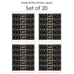 - HIGH QUALITY PARTY SUPPLIES: Adult 40th Birthday – Gold water bottle labels are professionally printed on a sticker paper with a glossy coating. They are waterproof and can be used on beverages that will be chilled, just be sure to apply prior to chilling. Add them to a fortieth birthday party beverage bar for an impressive, coordinated display.