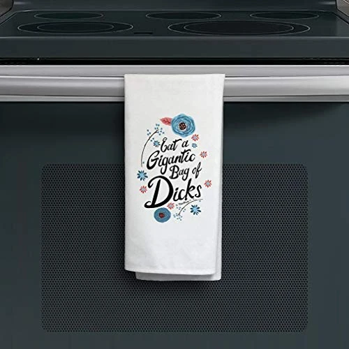 - Clean up any mess with a smirk using this humorous floral kitchen tea towel. This kitchen or bathroom towel makes an excellent gag gift, house-warming gift, kitchen accessory, and more.