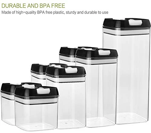 - EASY LOCK & Airtight Sealing Mechanism: Our food storage containers create an airtight seal, just need a pull to open our plastic container and close it to form a complete airtight space easily. No worry about spills as the containers are designed to seal all liquids. With special design airtight lids, these plastic containers will help you keep your food dry and fresh all the time.