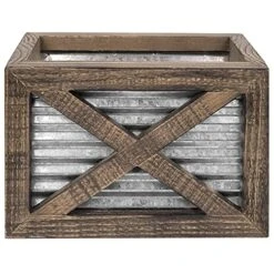 - RUSTIC KITCHEN DECOR: The corrugated galvanized metal and barn wood utensil caddy keeps your cooking utensils and accessories charmingly contained and easily accessible. Add this charming piece to your modern farmhouse kitchen for its functionality and good looks.