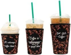 - Mixer Pack of 3 Sizes – Comes in Unique Styles – Our multi size pack includes 1 Small (fits 16 – 18 oz), 1 Medium (fits 22 – 24oz) and 1 Large (fits 32 oz) iced coffee sleeve. Keep them all for yourself or share with friends, family or coworkers! Great for monogramming your own custom design for parties or gifts.