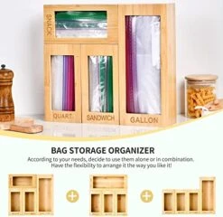 - Safe and Environmentally Friendly Material: Ziplock bag organizer is made of thicked bamboo board, which is not only eco-friendly and safe, but also more durable than ordinary kitchen drawer organizer set. Bamboo drawer organizer, finely polished by hand, strong and durable. Bag organizer for kitchen plastic bag storage.