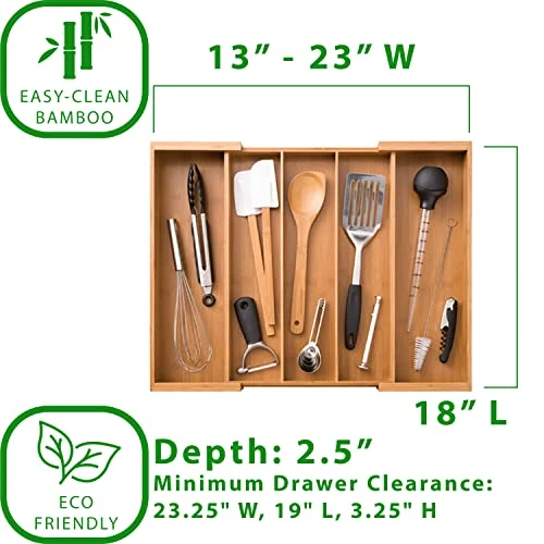 - Five long compartments. Perfect for cooking utensils and tools like spatulas, ladles, tongs, whisks, can openers, forks, knives and food thermometers