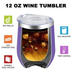 - STEMLESS DESIGN: Double wall vacuum Keeps hot drinks hot and cold drinks cold for hours while preventing condensation from temperature transfer. Keep the wine or juice stable in the cup and no spill. Also easy to clean by hand.
