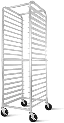 - SAFE AND HUMANIZED SIZE DESIGN – the size of the bread rack is 26″ L x 20″ W x 38″ H, The spacing of each rack is 3″. Each pair of sliders can support 75 LB and the maximum can support 350 LB. The open shelf is convenient for you to put on or remove the baking tray from the rack.