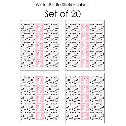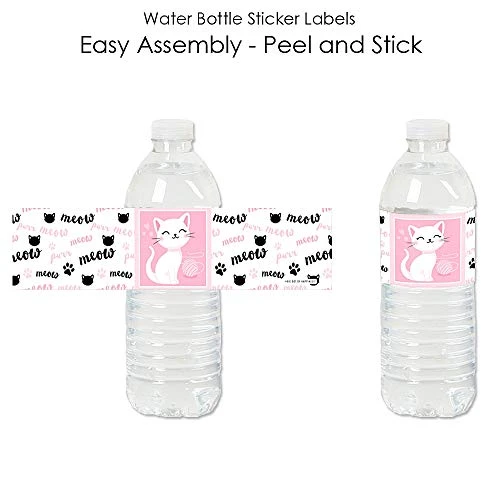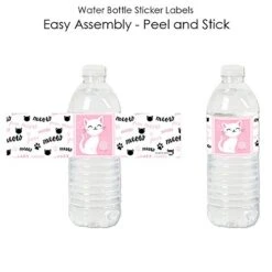 - HIGH QUALITY PARTY SUPPLIES: Purr-fect Kitty Cat water bottle labels are professionally printed on a sticker paper with a glossy coating. They are waterproof and can be used on beverages that will be chilled, just be sure to apply prior to chilling. Add them to a birthday party or baby shower beverage bar for an impressive, coordinated display.