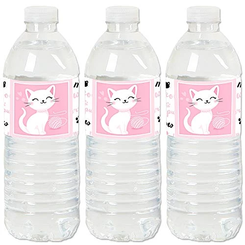 - UNIQUE BEVERAGE BAR: Purr-fect Kitty Cat Water Bottle Labels will make coordinated beverage area at your baby shower or birthday party. Add Purr-fect Kitty Cat Water Bottle Labels to standard water bottles, mini water bottles, soda bottles and single-serving juice containers. Water bottle labels can also be used on cylinder containers to create Purr-fect Kitty Cat rabbit centerpieces.