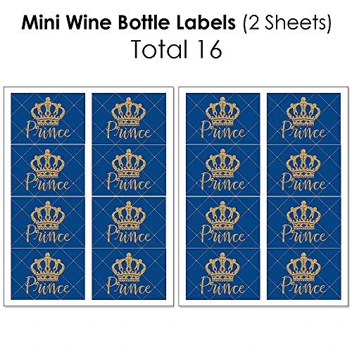 Big Dot Of Happiness Royal Prince Charming – Mini Wine Bottle Labels, Wine Bottle Labels And Water Bottle Labels – Baby Shower Or Birthday Party Decorations – Beverage Bar Kit – 34 Pieces