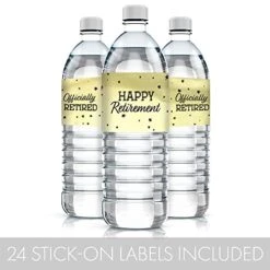 - EASY TO PEEL AND STICK retirement water bottle labels can also be used as retirement beer bottle labels, large candy bar labels, and more.