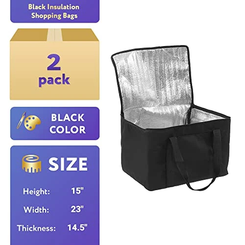 - 2 PACK INSULATED BAGS 13” x 14” x 8”: This insulated cooler bag is hot bags for delivery, allowing preservation of food and beverages at the exact temperature desired by you. Insulated tote bag features aluminum insulation, durable handles, and double zipper closures.