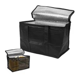 - DURABLE DESIGN: The food insulation bag is equipped with handles from both sides for comfortable transportation. Moreover, food shopping bags have reinforced double zipper closures to contain temperature. Heavy duty food delivery bags are tearing and stretch-resistant.