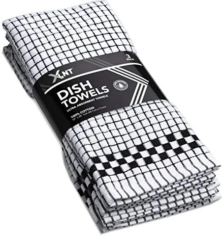 - HIGHLY DURABLE & LIGHTWEIGHT DISH TOWELS: XLNT Checkered Kitchen Hand Towels are made of durable, 100% cotton that produces a strong, thick dishcloth to assist with all your kitchen needs! That’s why these dish drying towels are lightweight, highly absorbent, durable and dry quickly. Thay are machine washable and dryer safe to ensure easy care. Our kitchen towel set includes dishtowels measuring 18″ X 28″ (45.7cm X 71cm) to tackle all of your drying and cleaning kitchen tasks.