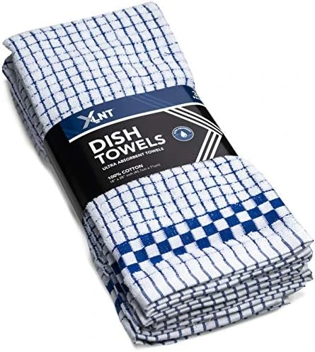 - MACHINE WASHABLE & DRYER SAFE: XLNT Blue checkered 100% cotton dish towels are machine washable and dryer safe. They are also lint free dish drying towels and won’t shrink, standing up to multiple washes. For best results, wash on a gentle cycle in cold water and tumble dry on low. There’s no doubt they’ll meet all of your kitchen’s needs at home, but these cute dish towels are also trusted in commercial settings like restaurants and hotels. They’re that good and customers agree.