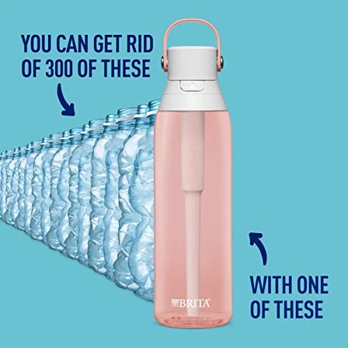 - The filter reduces chlorine (taste and odor) and more with every sip; compatible with Brita water bottle replacement filters