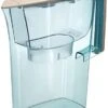 - This space efficient Brita pitcher fits perfectly on refrigerator shelves, features an easy-fill locking lid and is easy to pour; Height 9.37″; Width 4.45″; Length/Depth 9.8″; Weight 1.39 pounds
