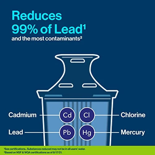 - Reduce 99% lead, Chlorine (taste and odor), Cadmium, Mercury, Benzene, Asbestos, and more, while an electronic indicator makes filter reminders effortless