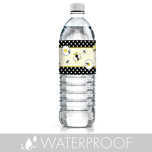 - WATER BOTTLES NOT INCLUDED. Labels fit most standard size water bottles for bumble bee baby shower or bee birthday party favors.