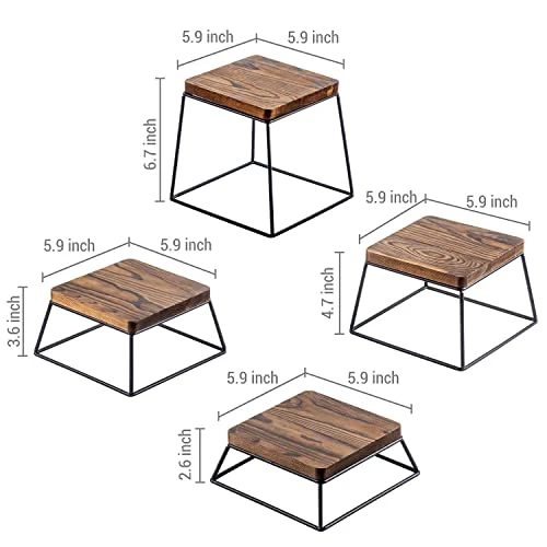 - Approximate Dimensions: Each Riser Height – 2.5 H; 3.5 H; 4.75 H; 6.75 H; Wood Surface – 6.0 L x 6.0 W (in inches)