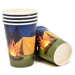- High Quality: Plates are made of high quality thick paper. Napkins are soft and absorbent. Great for a Camp Out campsite party. Do NOT place the plates in the microwave. Cups are for cold drinks only. The campground party set really adds dimension to your parties as your guests will love the cute and pretty design.