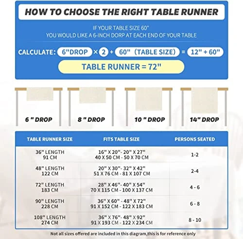 - Fits Table Size : This table runner is 13 x 72 inch, appropriate for a table that can seat 4-6 people, better match your table and give you a delightful dining experience