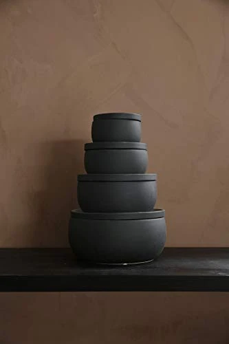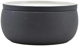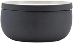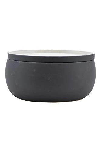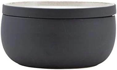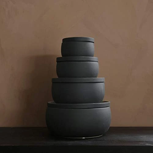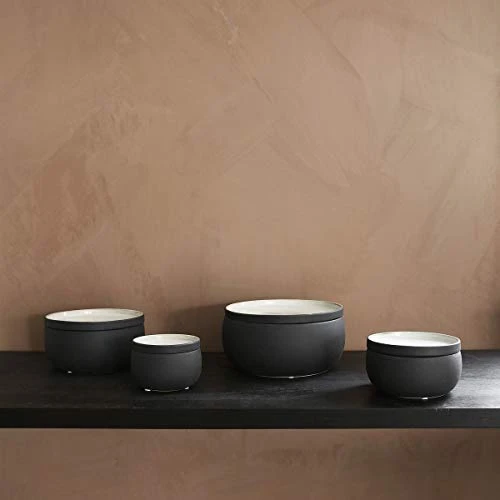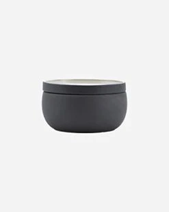 - The storage pot is black, and comes with a cool, sand-coloured lid