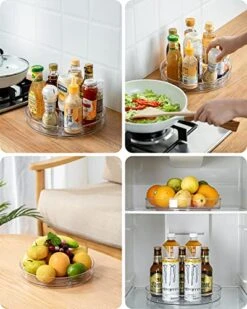 - The clear PET material makes the items you put on the turntable more visible, the raised edge keeps the items from falling off.
