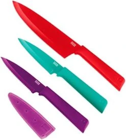 - Matching sheaths allow safe storage within kitchen drawers and are great for use outside the kitchen (barbecues, camping, on vacation etc)