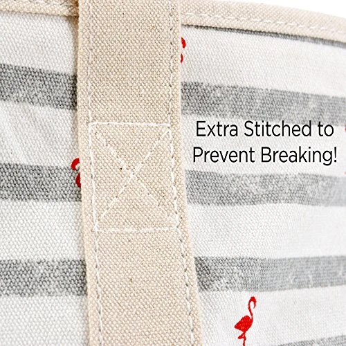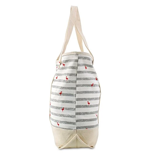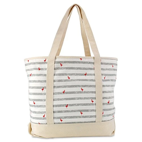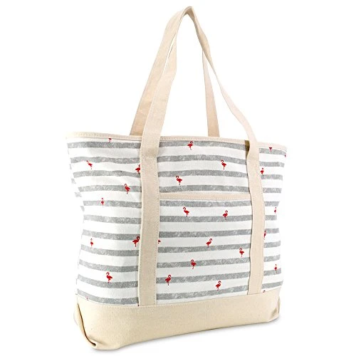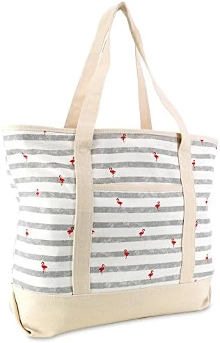 DALIX 22″ Shopping Tote Bag In Heavy Cotton Canvas (Zippered Top) Gray Flamingo
