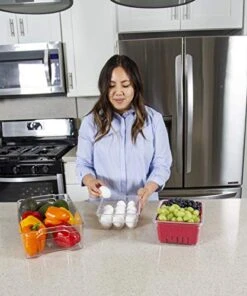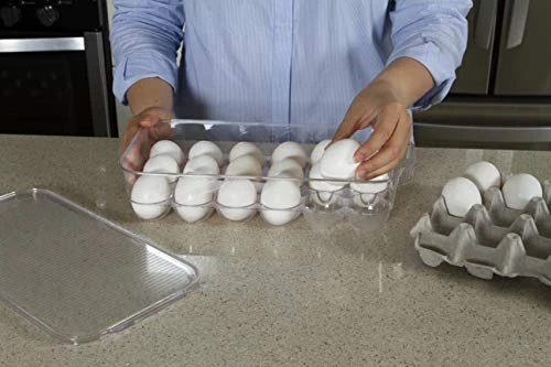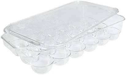 - STACKABLE: The Deluxe Egg Tray fits easily in your fridge, and it includes a lid so you can stack it easily with other Kitchen Spaces organizers to maximize your space.