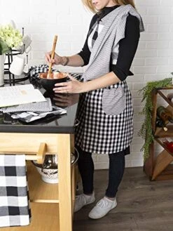 - COMES WITH HUGE POCKET: Holds cooking spoons, spatulas, and other kitchen accessories while you are busy baking, cooking, serving, or crafting.