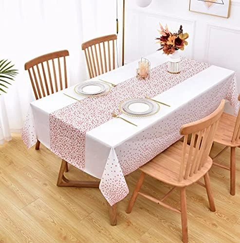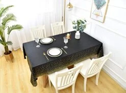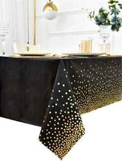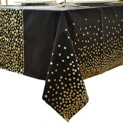 - 4-Pack pure black rectangular vinyl tablecloth with gold dots, elegant and great for multiple occasions such as picnic, Thanksgiving, Christmas gathers and parties like wedding, anniversaries, graduation, etc