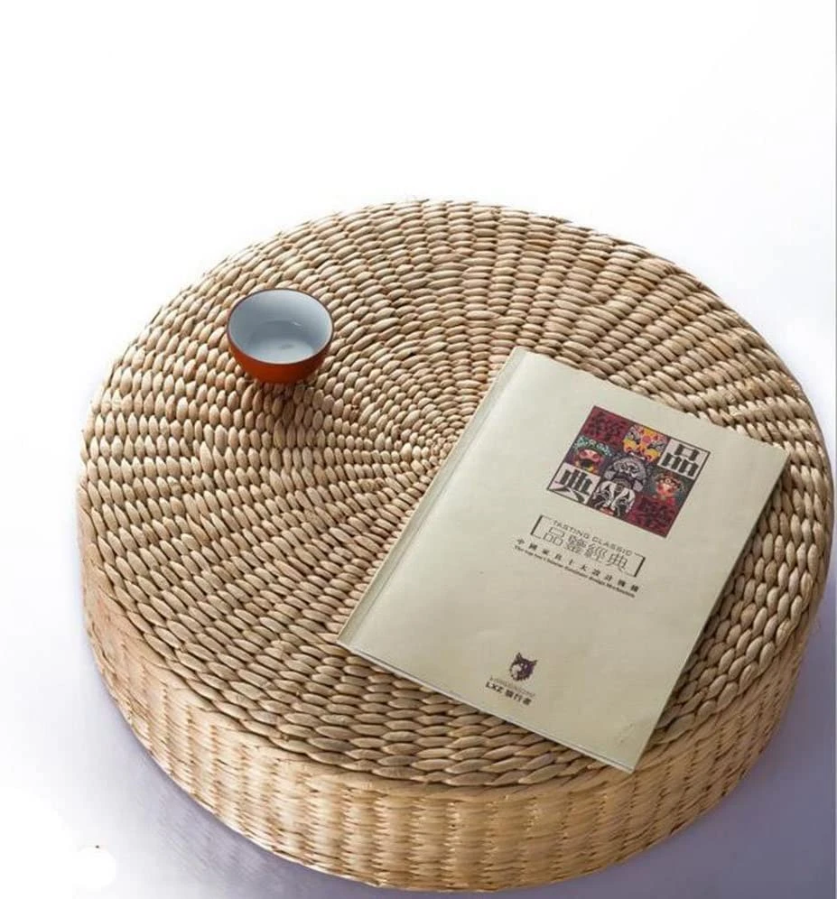 DUOSHIDA Tatami Floor Pillow Sitting Cushion,Round Padded Room Floor Straw Mat For Outdoor Seat(2 Pack 19.7×4.3)