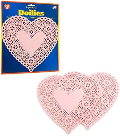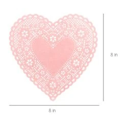 - 18 HEART PAPER DOILIES – The pink, heart shaped paper doilies can be used for crafting, parties, decorations and much more. Each lace paper doily measures 8 inches. Included are 18 per pack.