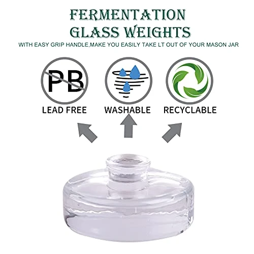 - PERFECT FIT WIDE MOUTH MASON JARS:With a 2.7” diameter, these Glass Weights are specifically designed to fit all wide mouth mason jars,making them just right for small batches of fermented veggies and improving the entire fermentation process. Great for Sauerkraut, pickle, Kimchi, and any vegetable and fruit ferments.