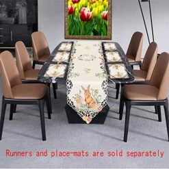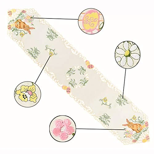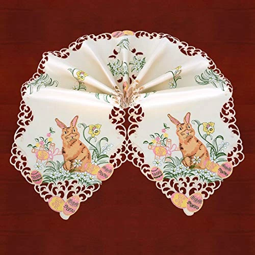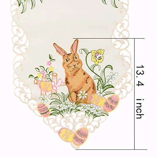 - 🐇 Cream background with embroidered cute bunnies eating in the grass