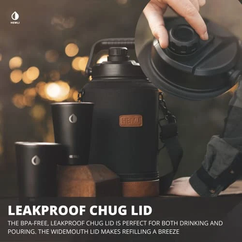 - BPA-Free Leakproof Lid – the durable chug lid is great for direct drinking or pouring and the 4.33-inch wide mouth makes filling with water and ice a breeze. The lid is sealed with a thick silicone gasket which prevents leaks and keeps your temperature constant. The tight seal and included stainless steel cup make this a perfect beer growler.