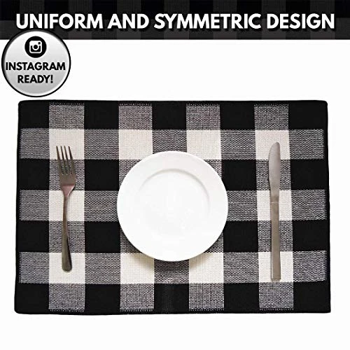 - [CLASSIC PATTERN] – The buffalo check place mats is a fantastic choice for farmhouse decor or modern decor; With this buffalo plaid placemat, your dining will become more fun, whether is coffee time,meal time, the atmosphere will become more comfortable, natural, cozy and relaxed.