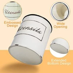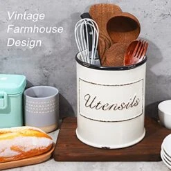 - Add Rustic Farmhouse Touch to Your Kitchen. This cream utensil container is embossed “UTENSIL”, farmhouse design and antique vintage look. It will catch your eye at first sight.