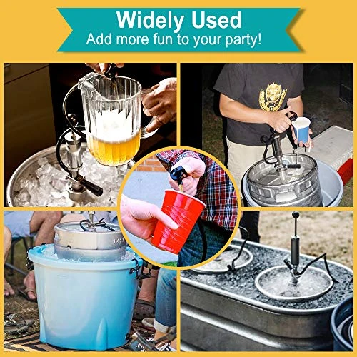 - 【Easy to Tap & Easy to Pump】: Highly reliable 8” cylinder picnic party pump with ergonomic ball end. It’s easy to operate with a simple stroke pump! Perfect for home or commercial use. and durable lever style handles for easy dispensing effortlessly. fun picnic keg tap system.