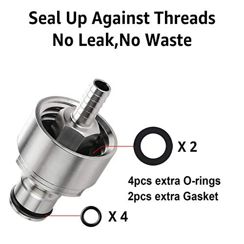 - [Food Safe Gasket/ No Leaks]: We use premium material for the gaskets and o-rings. High resilient food safe rubber gaskets to seal against the threads and give you no leak connections! We updated our package with more o-rings and more gaskets for replacement.
