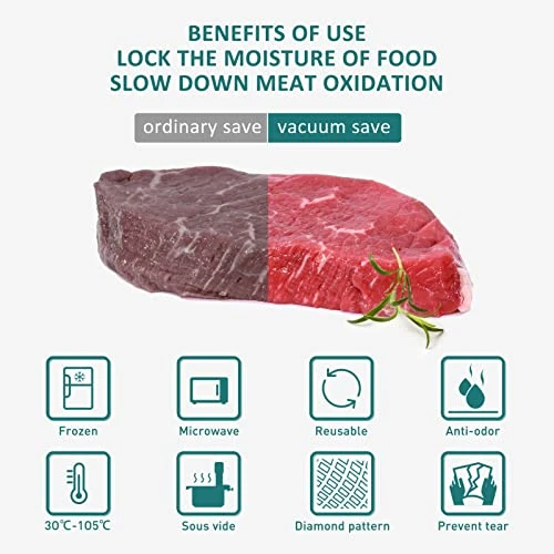 - Heavy Duty and Puncture Prevention: The vacuum seal bag is designed with 7 layers of coextruded film, which is very strong and not easy to tear. It can be used for a long time. It also prevents puncturing sharp objects, such as bones or edges.