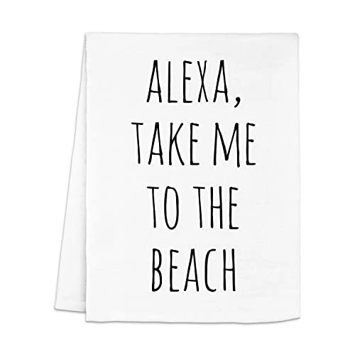 Funny Dish Towel, Alexa Take Me To The Beach, Flour Sack Kitchen Towel, Sweet Housewarming Gift, Farmhouse Kitchen Decor, White