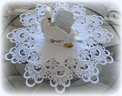 This has a decadent lace border and will compliment any decorating style. It looks beautiful with a piece of crystal or a vase of flowers. Makes a great gift item!