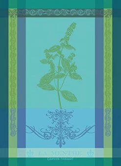 Garnier Thiebaut, Brin de Menthe (Sprig of Mint) French Jacquard Kitchen / Tea Towel, 100 Percent Cotton. Price is for one (1) towel. Made in France.