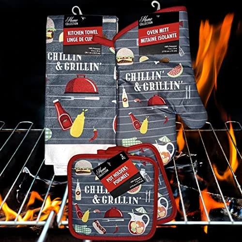 - ♨️ Bbq Themed: The kitchen linens are printed with “Chillin & Grillin”