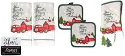 - Easy to Use and Display: The holiday kitchen dish towels are made with polyester and dry fast. The Christmas oven glove and pot holders have 100% cotton on the front and polyester on the back. They are quilted with cotton and can resist heat up to 350 F or 176 C degrees. It protects your hands and arms while you are preparing the wonderful Christmas dinner. They have loops stitched in so hanging storage is easy. When needed, wash in cold water or by following the washing instruction on the tag.