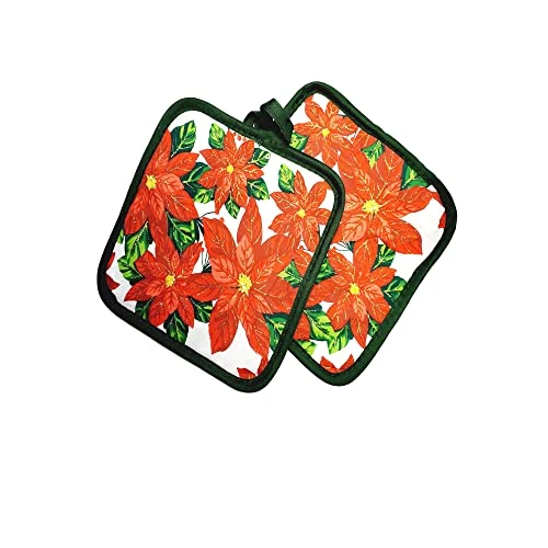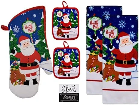 - A must have item in the kitchen: Christmas Kitchen Towels set includes 2 Christmas holiday towels, 2 pot holders, and 1 cooking glove. These kitchen hand towels are 15X25 in., made with quick dry materials. The Christmas pot holders are 7X7 in., padded with cotton to increase heat resistance, protecting furniture. The generously sized Christmas holiday oven mitt is 7X13 in., insulated cotton.The Christmas holiday kitchen towels, oven mitt, and pot holders set will bring you a merry Christmas.