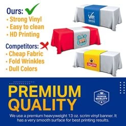 - Printed on 13oz Vinyl for a more vibrant and HD look