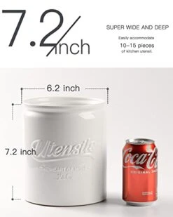 - [Stable & Durable Utensil Crock] Made of premium ceramics, this ceramic utensil holder is clearly heavier than ones made of other materials, steadily stands on your countertop; Glossy glaze & durable material, withstands long-time daily uses