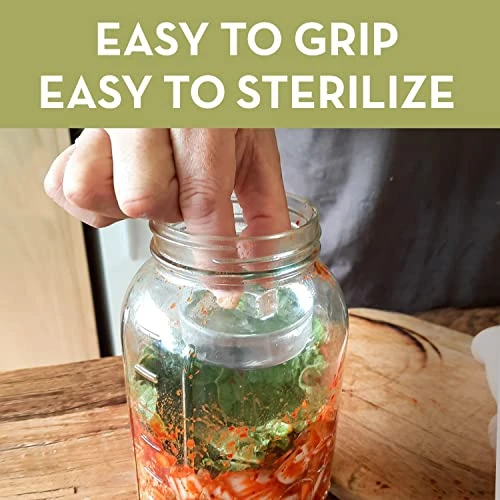 - WIDE HANDLES FOR LIFTING – insert and extract the fermenting weights with ease from wide mouth mason jars – no more fishing discs out with your fingers